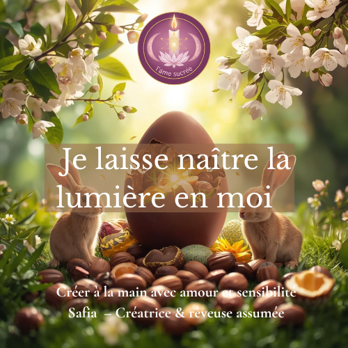 Le petit lapin et son œuf décoratif symbolisent la naissance, la fraîcheur, et l’envie de repartir sur de nouvelles bases.